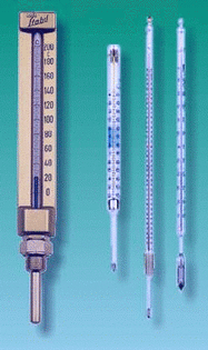 • Kapillare: prismatisches Glas, weißbelegt, bis 200°C blaue Füllung, unter -40°C rote Füllung, über 200°C Hg-Quecksilberfülung